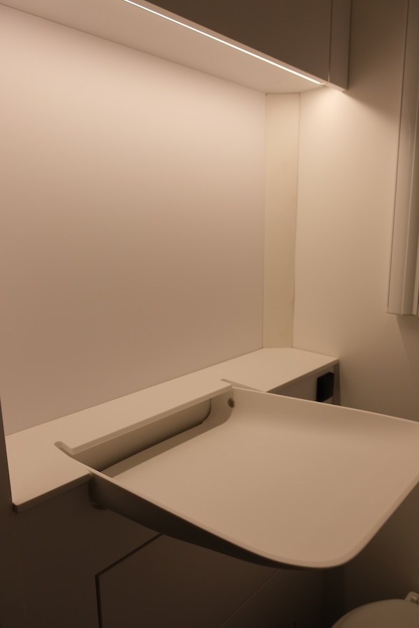 Bad: Waschtisch mit Klappwaschbecken und Deckplatte aus Mineralwerkstoff (weiß)