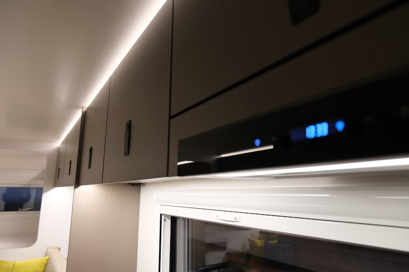 - Gaskonzept: Integrierter Gastank ca. 30 l, 2-Zonen-Gaskochfeld, Gasaußenanschluss, Gasprüfung und Eintragung